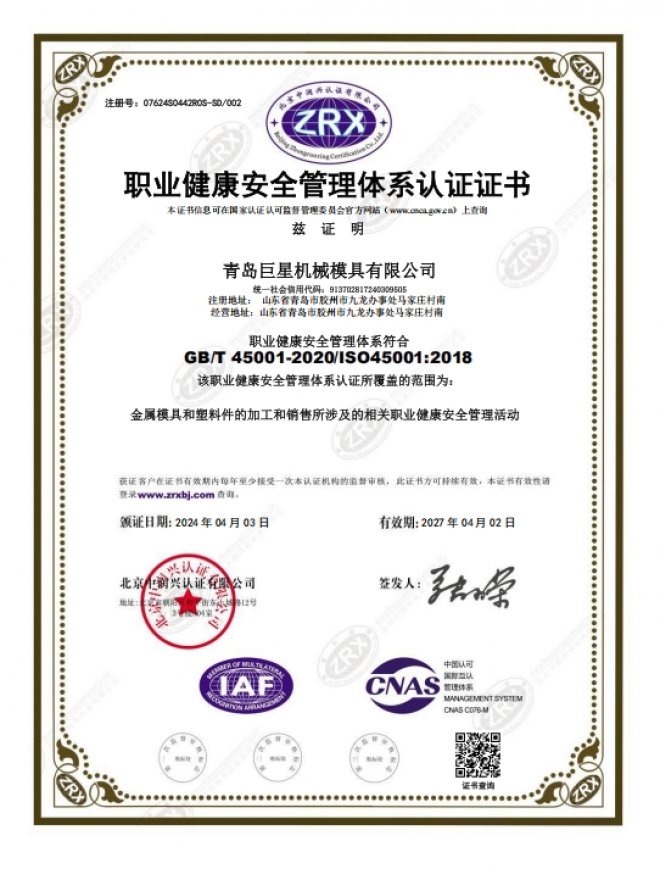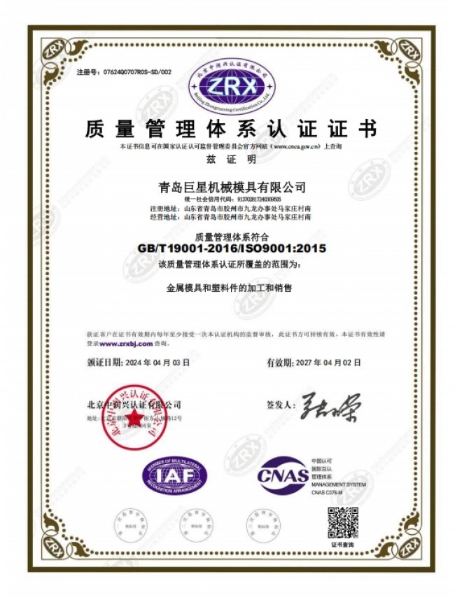 青島巨星機(jī)械模具有限公司位于美麗的膠州灣畔——青島市膠州市。成立于1995年。多年來一直致力于塑料模具,金屬沖壓模具,橡/硅膠模具,板片材擠出模具等模具的研發(fā)制造,并且配有塑料制品標(biāo)準(zhǔn)化生產(chǎn)車間,90T-800T各型號注塑機(jī)齊全,可為您提供模具研發(fā)與產(chǎn)品生產(chǎn)一站式服務(wù),本司已通過ISO9001質(zhì)量管理、ISO14001環(huán)境管理、ISO45001職業(yè)健康安全管理等體系認(rèn)證。目前已與美國通用汽車,韓國大宇造船、現(xiàn)代重工,俄羅斯,巴西,非洲等國家或地區(qū)的實(shí)力公司建立長期合作關(guān)系。