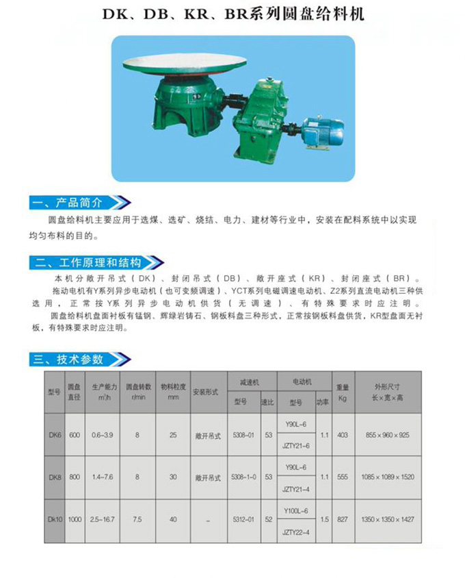 DK、DB、KR、BR系列圓盤給料機(jī)